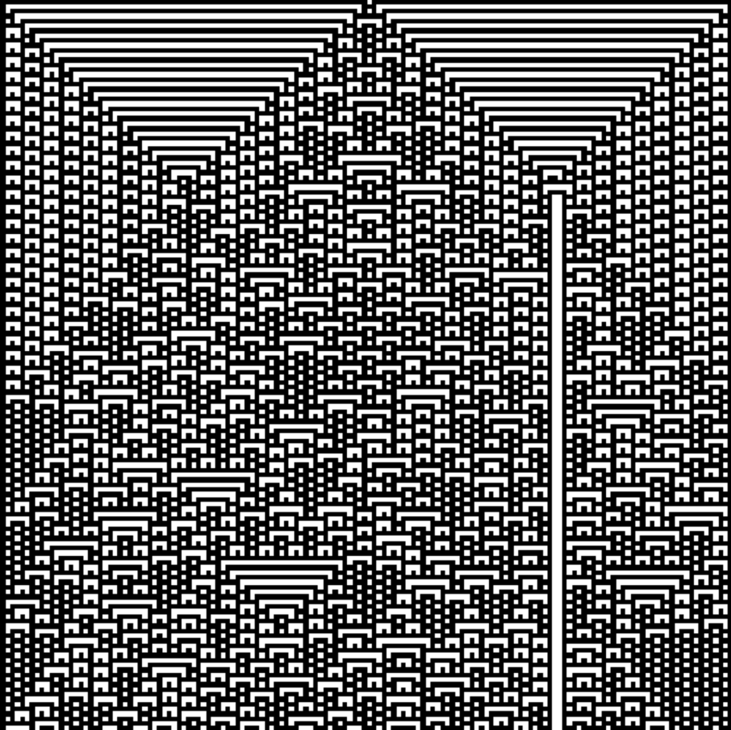 This patch generates the evolutions of one-dimensional elementary cellular automata according to the different possible legal sets of rules, starting from a state containing a single site with the value 1.
